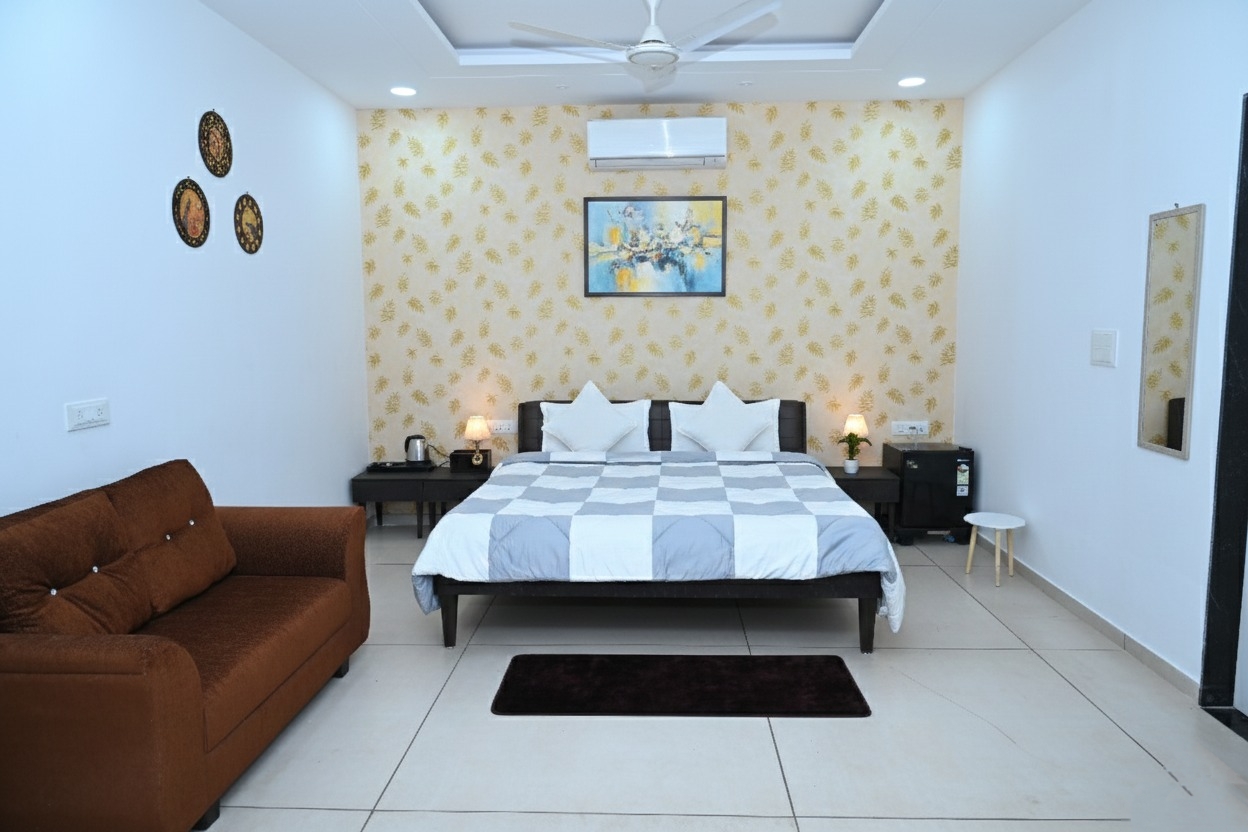 Vrindavan Eco-Retreat was born from a vision to create a sanctuary where luxury meets sustainability. Nestled amidst pristine nature, our resort celebrates the harmony between modern comfort and environmental responsibility.